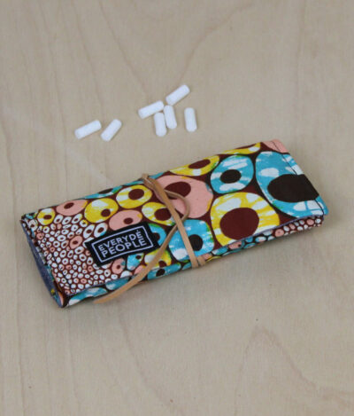 Die Drehertasche ist aus Baumwolle mit einem Gummi drin zum Befestigen der Blättchen.