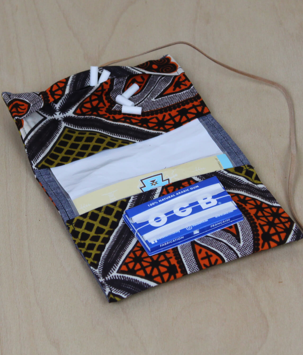 In dieser handgefertigten Tabaktasche findet alles seinen Platz. Filter, Blättchen und Tabak.