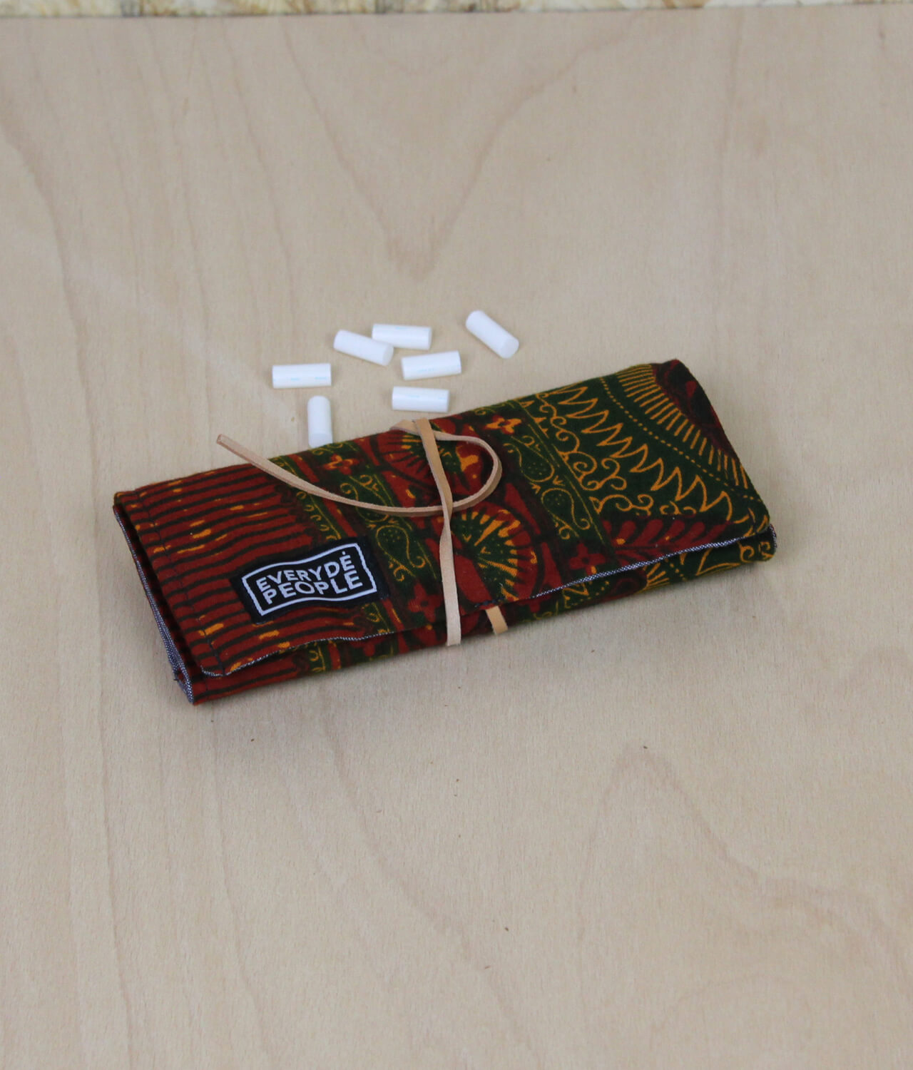 In dieser handgefertigten Tabaktasche findet alles seinen Platz. Filter, Blättchen und Tabak.