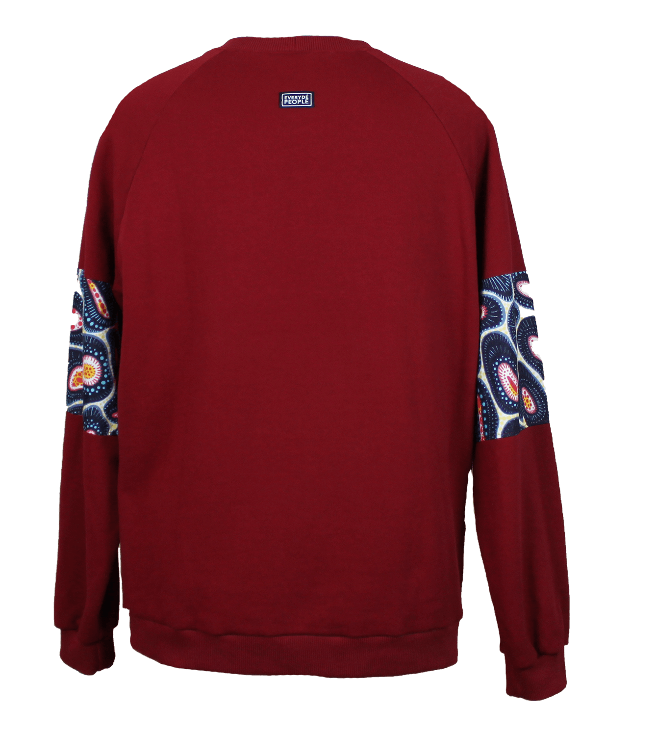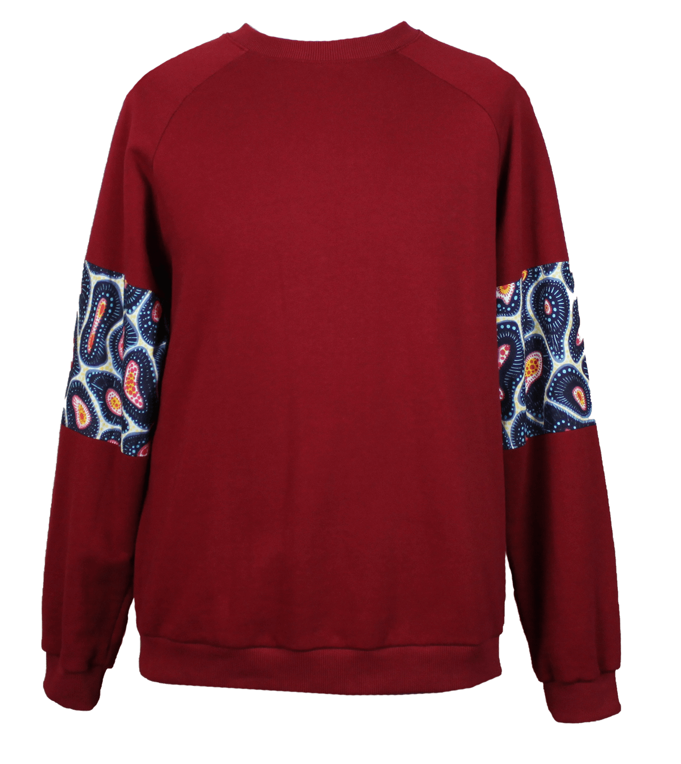 Gemütlicher Unisex-Sweater mit Raglan Ärmeln. Kunstvoll gemusterte Ärmeleinsätze. Von innen kuschlig angeraut.